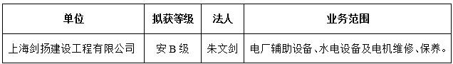 根据《上海市设备维修安装企业安全生产合格证等级评定办法》(沪设协(2018)5号),经上海市设备管理协会维修市场管理办公室评定,对上海剑扬建设工程有限公司拟核发《上海市设备维修安装市场安全生产合格证》,为保证评定工作的公正性,增加工作的透明度,现将该企业拟获合格证的等级和业务开展范围等予以公示,以广泛接受社会监督。公示时间为:2026年3月30日至4月3日,如有不同意见,请在公示期间以书面形式将反映的情况寄(送)至上海市设备管理协会(邮寄的材料以到达日邮戳为准)。单位反映情况需加盖公章,个人反映情况需签署真实姓名,并留下真实的联系电话、地址和邮政编码。